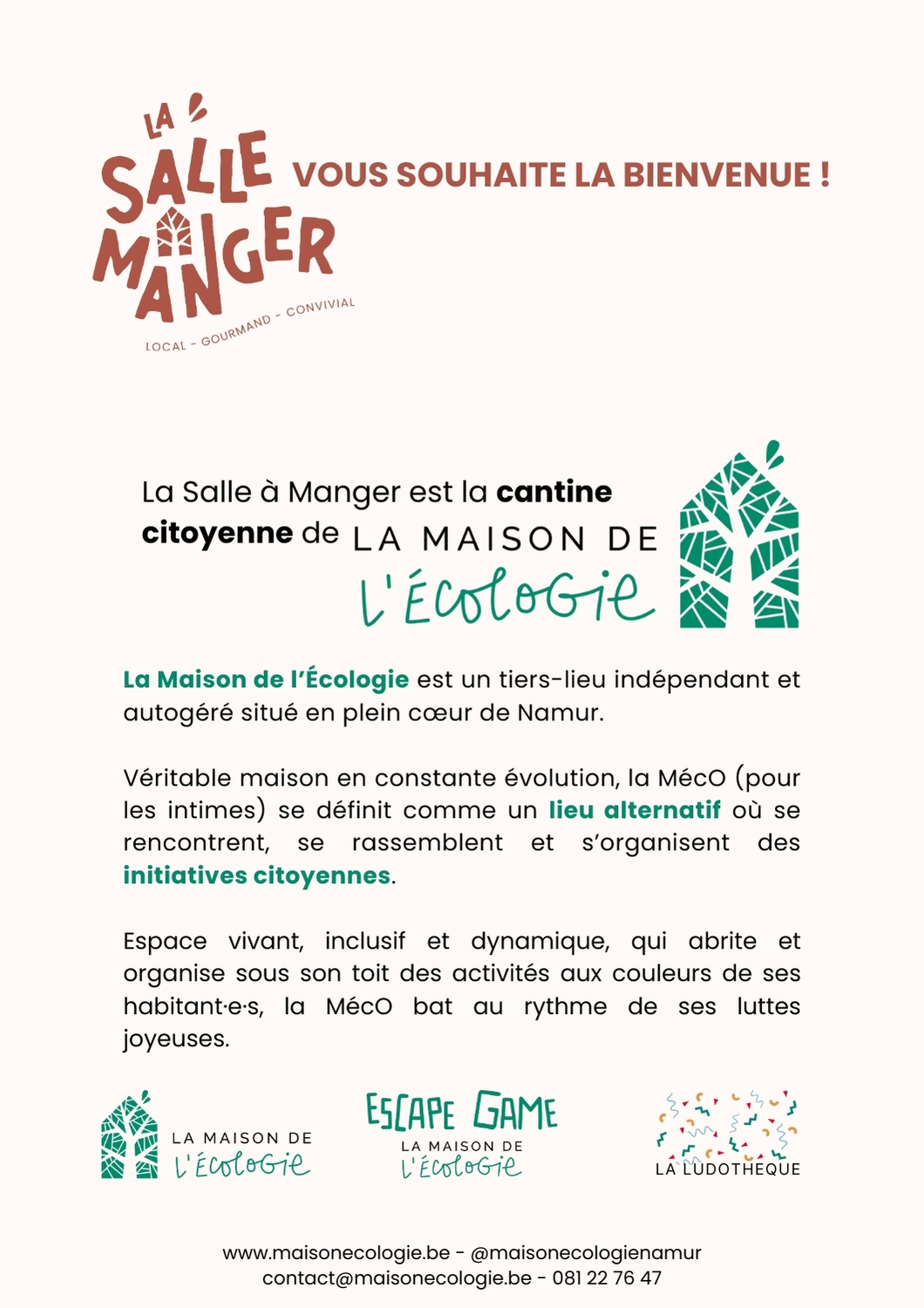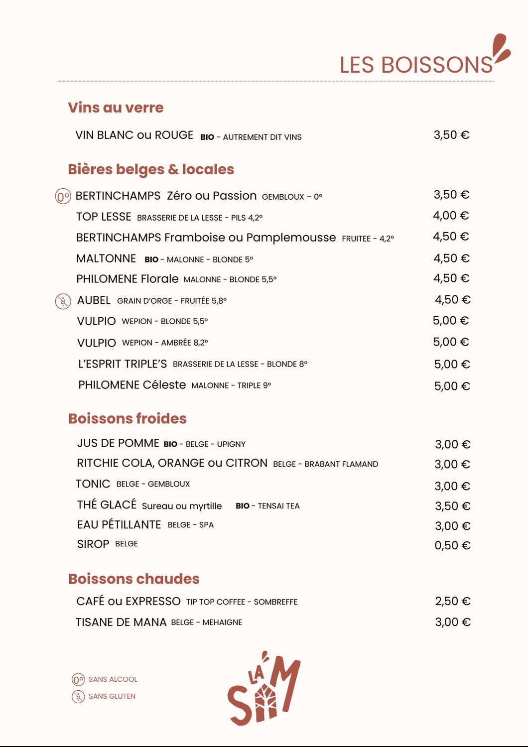 La SàM a à coeur de vous proposer de la qualité régionale, à des prix accessibles. Notre objectif : une carte locale, de saison et gourmande. Et nous y arrivons grâce à nos partenaires géniaux.